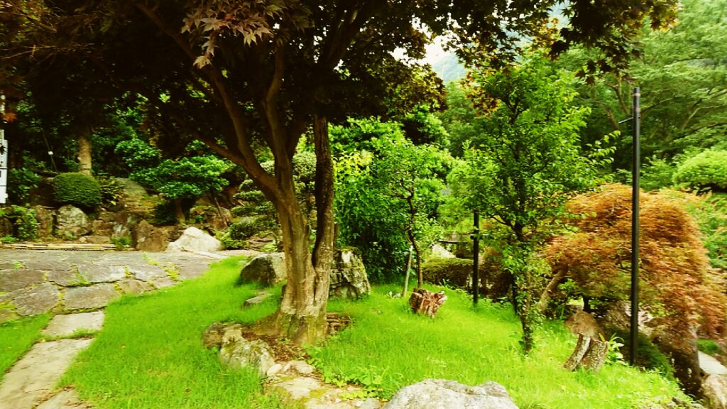 敷地内には長瀞渓谷を借景とした日本庭園があり、深林の幽庵と渓谷の迂曲が織りなす美しさが漂います。